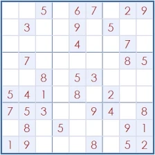 퍼즐을 보면 이미 몇 개의 숫자가 채워져 있어요. 이 숫자를 기준으로 빈칸을 채우기 시작합니다.